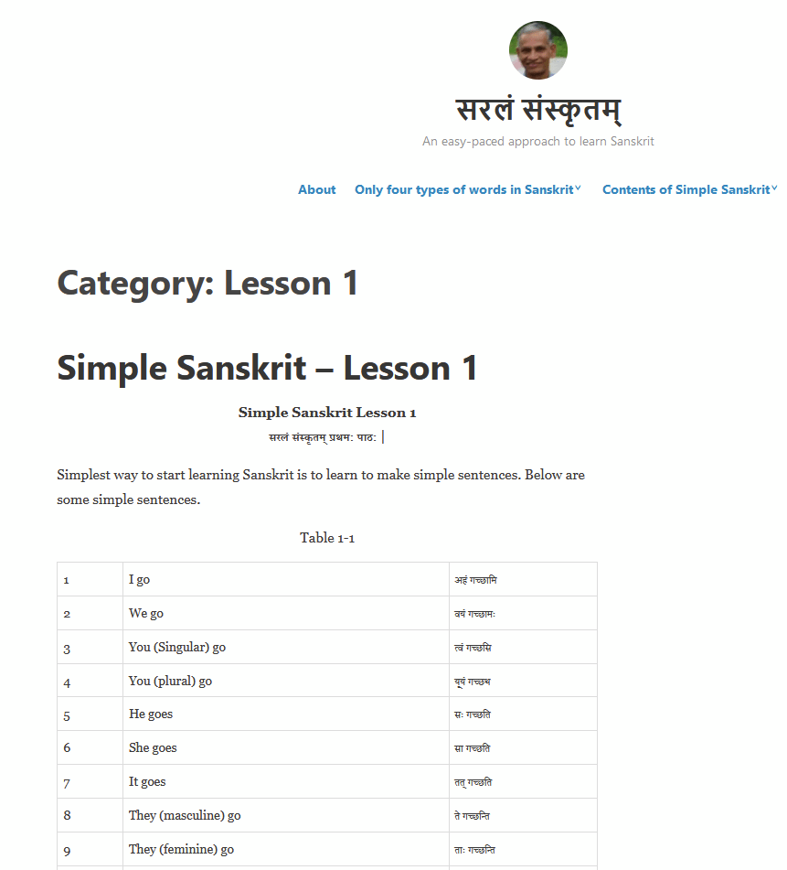 https://simplesanskrit.wordpress.com/category/lessons-1-to-10/lesson-1/