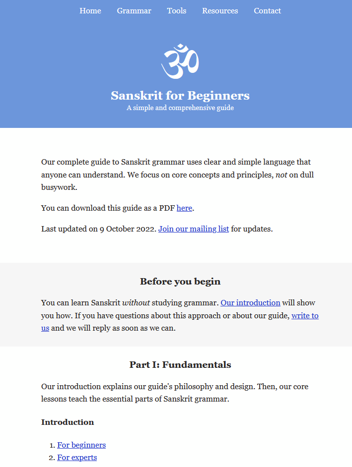 Learn Sanskrit has a brilliantly structured online program that is easy to read and understand