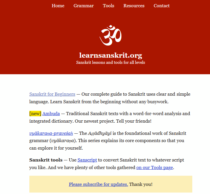Online Samskrita Tutorial: https://youtube.com/watch?v=dALt1f1JMVg